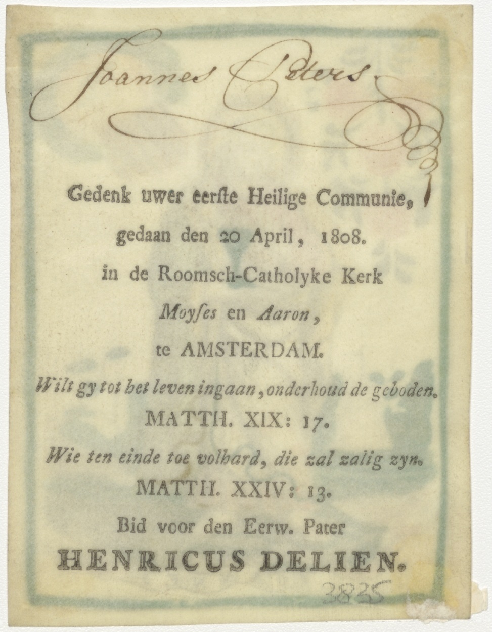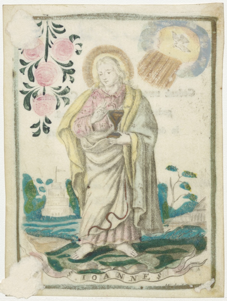 H. Joannes, ingekleurd, kz. H. Communie Peters;1808;Door pastoor Henricus Delien Moses en Aaron Kerk Amsterdam