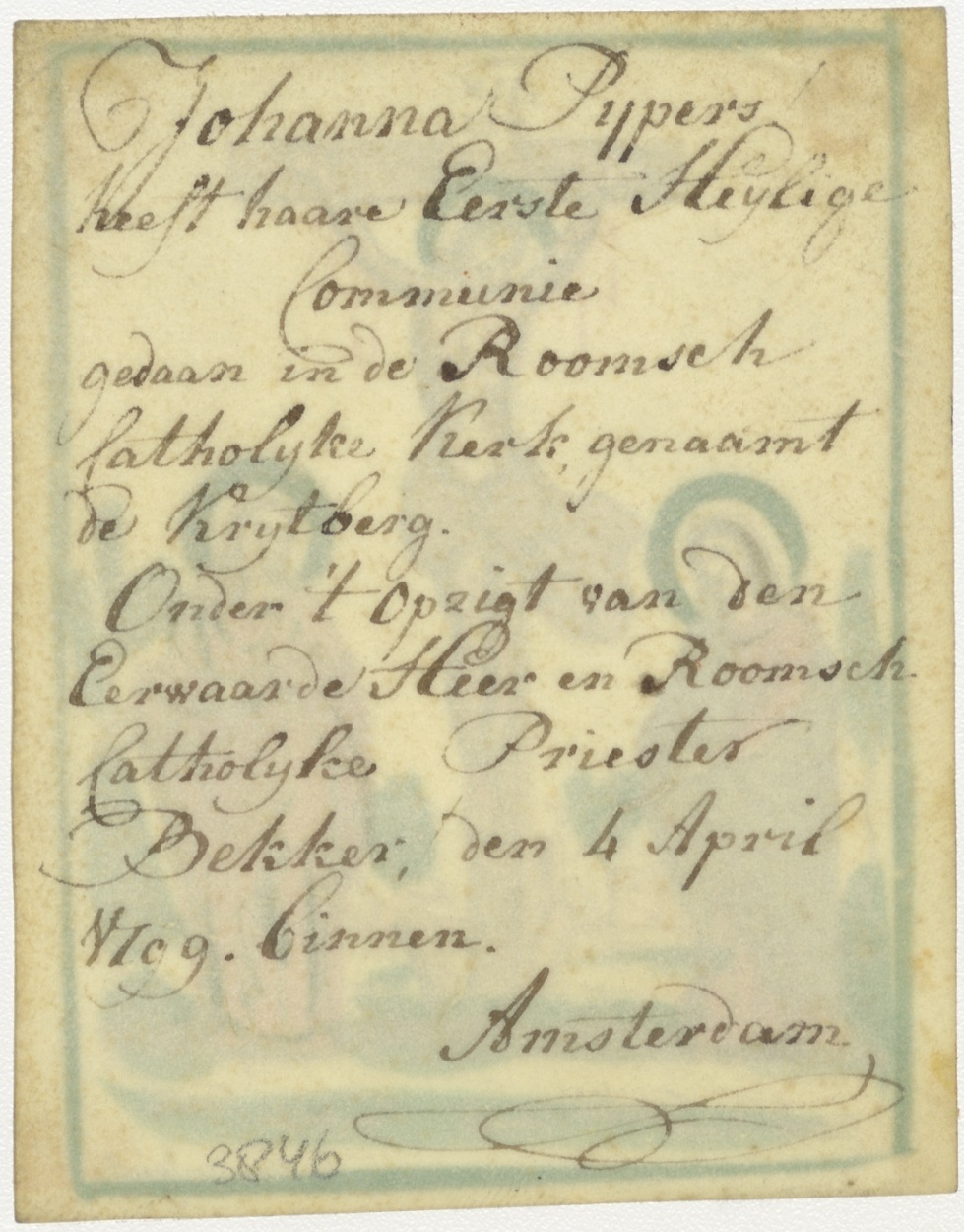 Christus gekruisigd, ingekleurd, kz. H. Communie Pijpers;1799 Krijtberg Amsterdam door pastoor Bekker