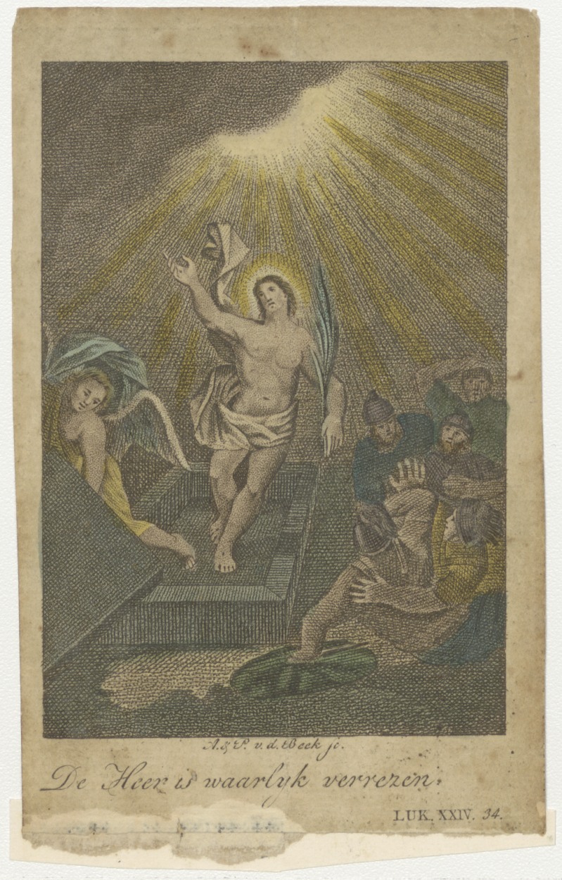 Verrijzenis van Christus;De heer is waarlijk verrezen, kz. H. Communie le Clair;1826 door pastoor ter Mars Haarlem