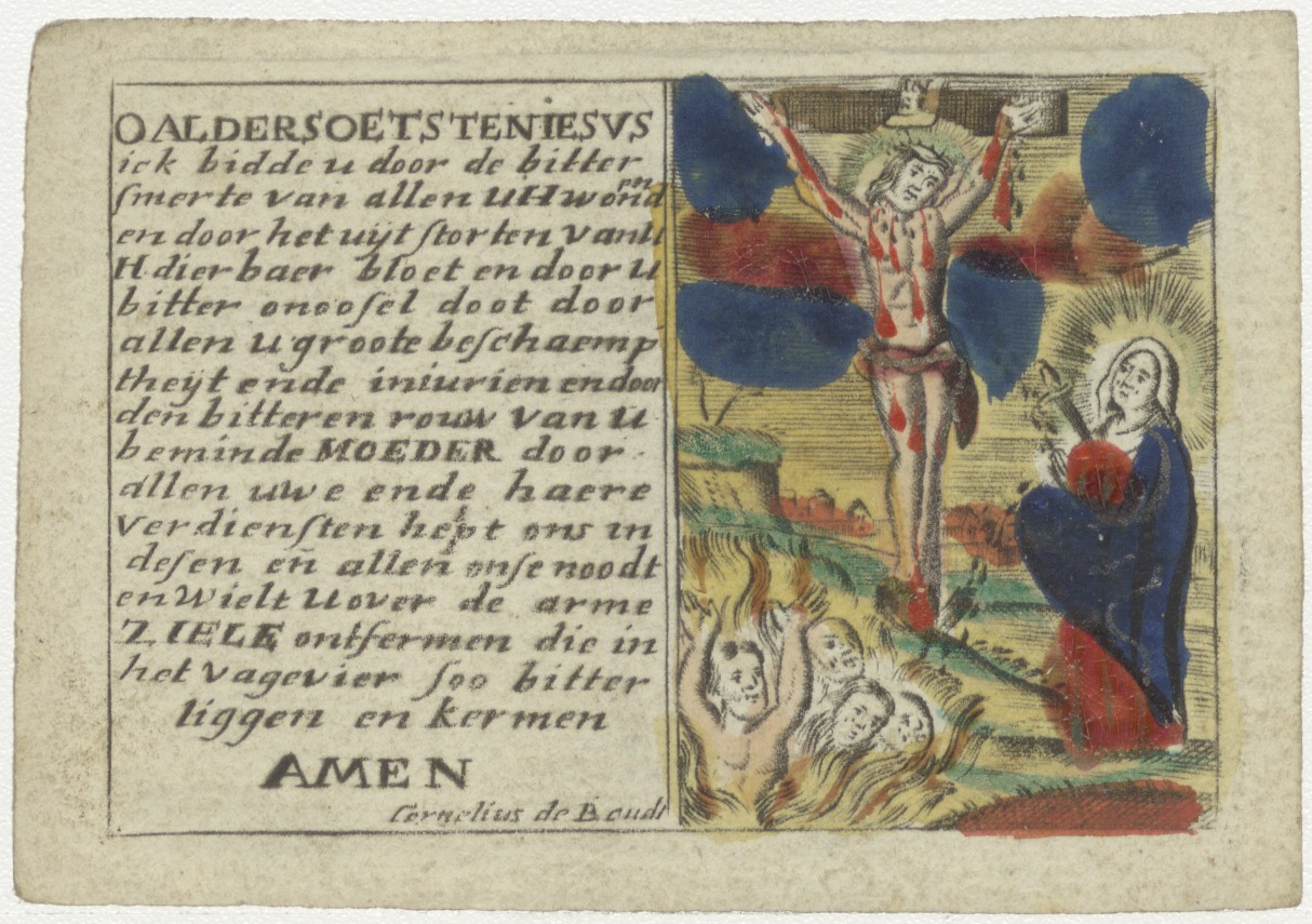 Gekruisigde Christus met gebed, ingekleurd