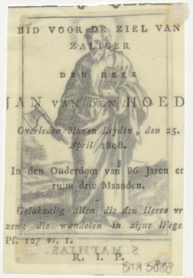 H. Mathias, kz. Bid voor ziel Jan van den Hoed (+1808);Leiden;