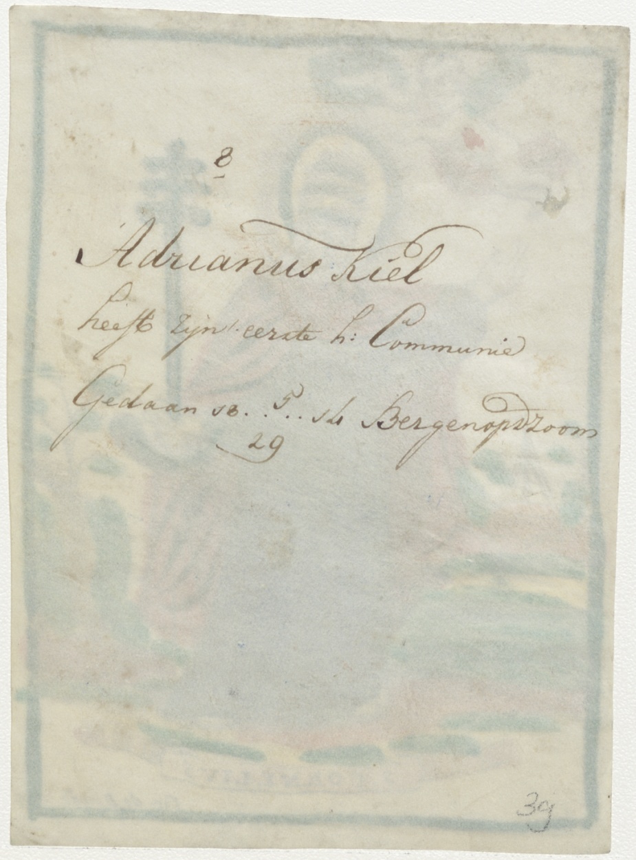 H. Cornelius, ingekleurd, kz. H. Communie Kiel;1814;Bergen op Zoom;
