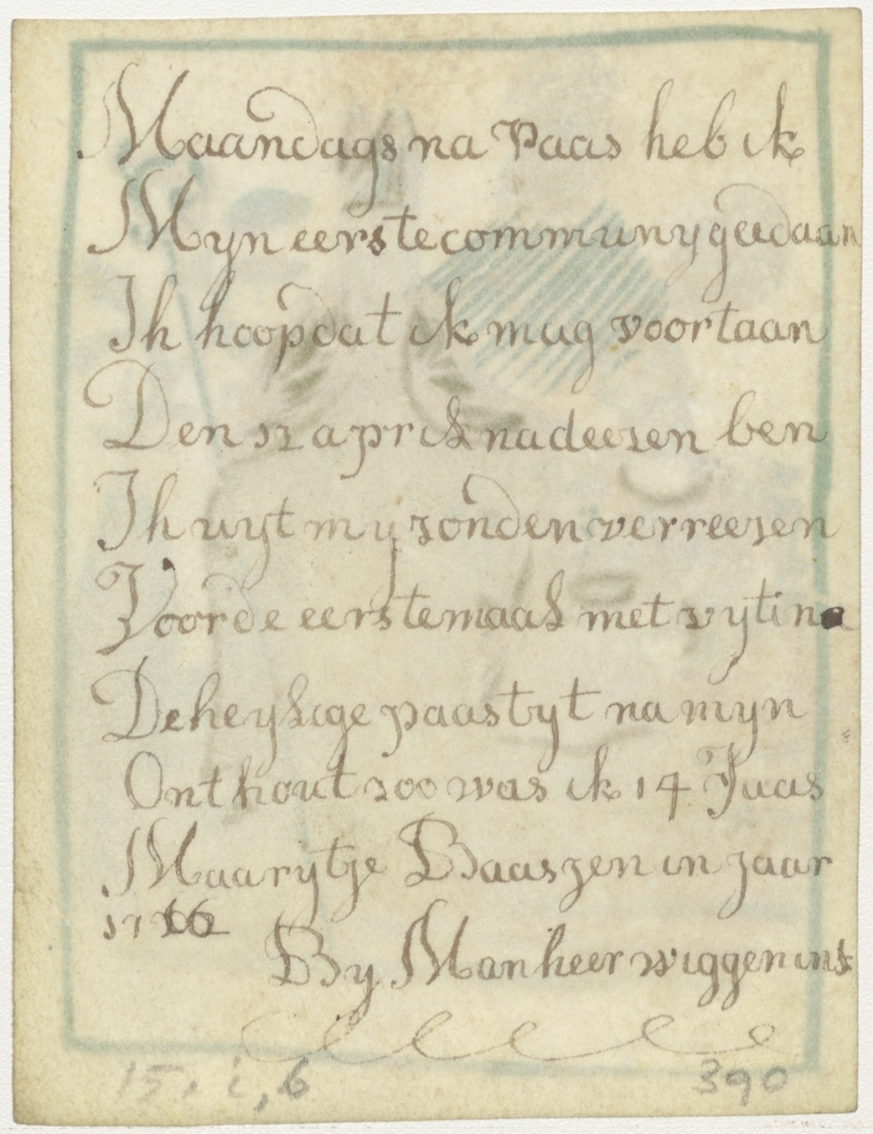 H. Martinus, ingekleurd, kz. H. Communie Baas;1766;