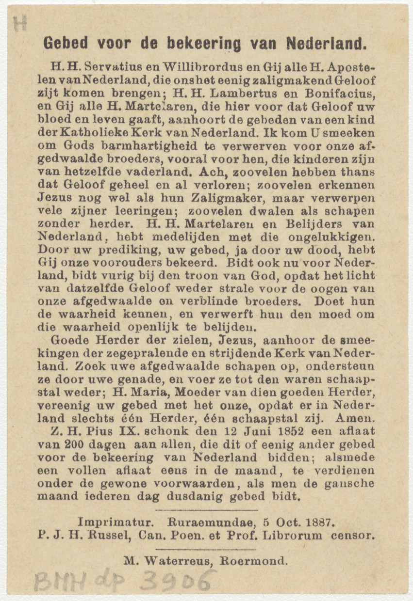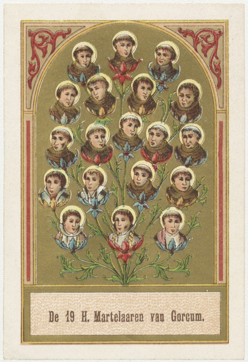HH. Martelaren van Gorcum, negentien portretten in struik, kz. Gebed voor de bekering van Nederland;aflaat