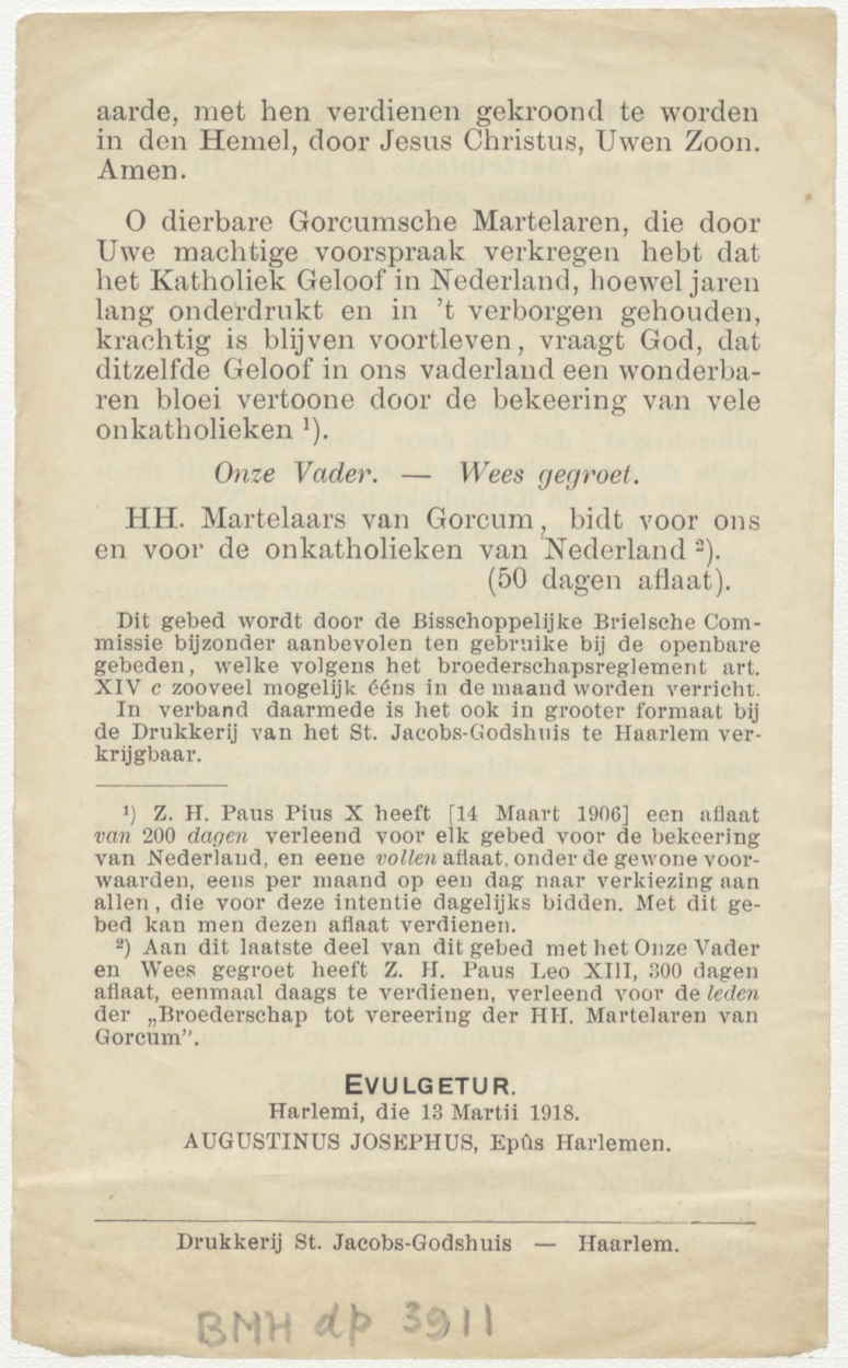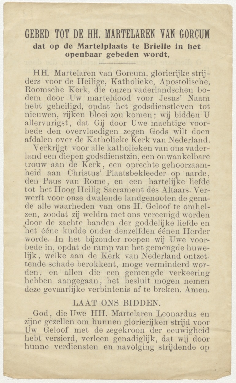 Gebed tot de HH. martelaren van Gorcum dat op de martelplaats te Brielle ..., kz. gebed;aflaat