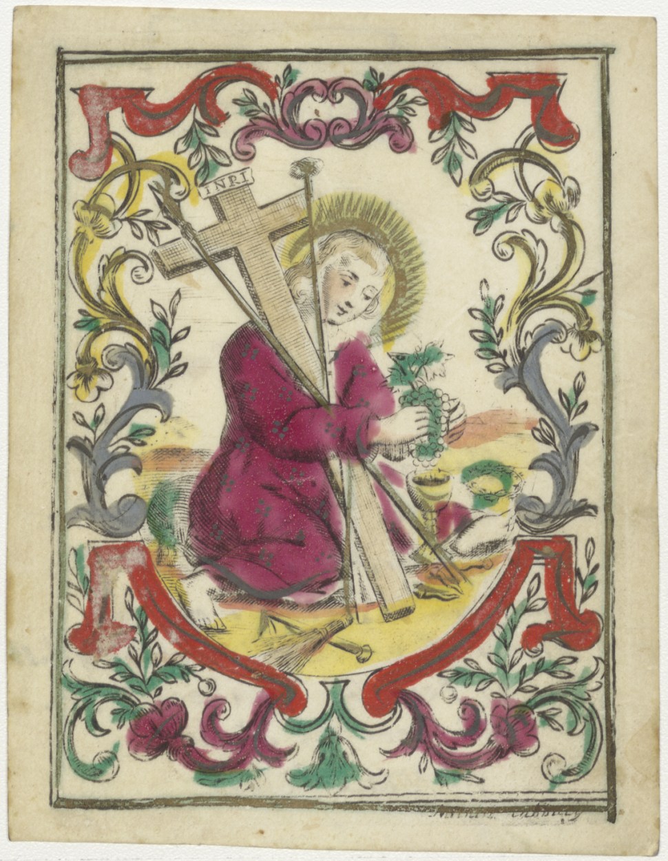 Christuskind met martelwerktuigen, ingekleurd, kz. H. Communie Dirkse Borsa;1753;Abcoude;