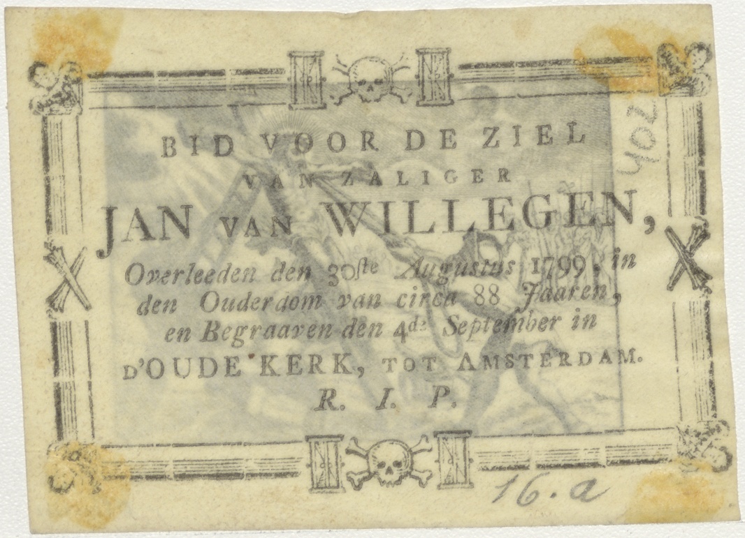 Oprichting van Christus' kruis, passiescène, kz. Bid voor ziel Van Willegen (+1799);Oude Kerk Amsterdam;