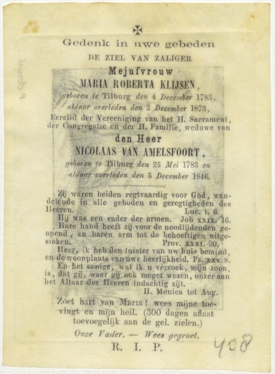 Christus met martelwerktuigen, kz. Bid voor ziel Amelsfoort-Klijsen (+1873);Tilburg;