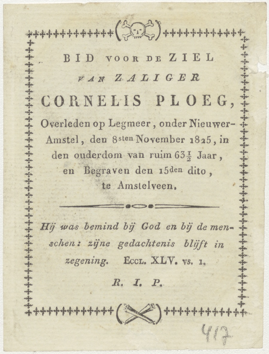 H. Clara, kz. Bid voor ziel Ploeg (+1825);Amstelveen;