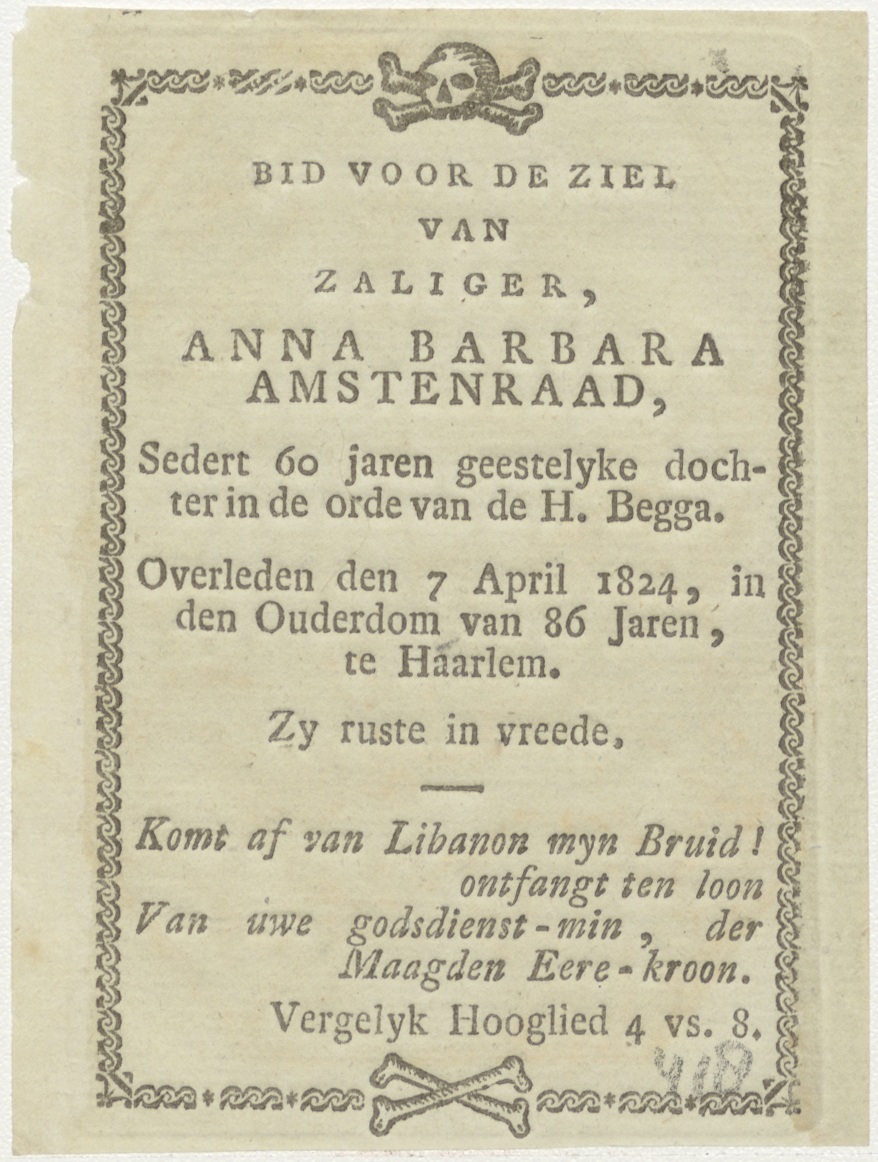 H. Emerentiana, kz. Religieus;Bid voor ziel Anna Amstenraad (+1824);geestelijke dochter in de orde H. Begga