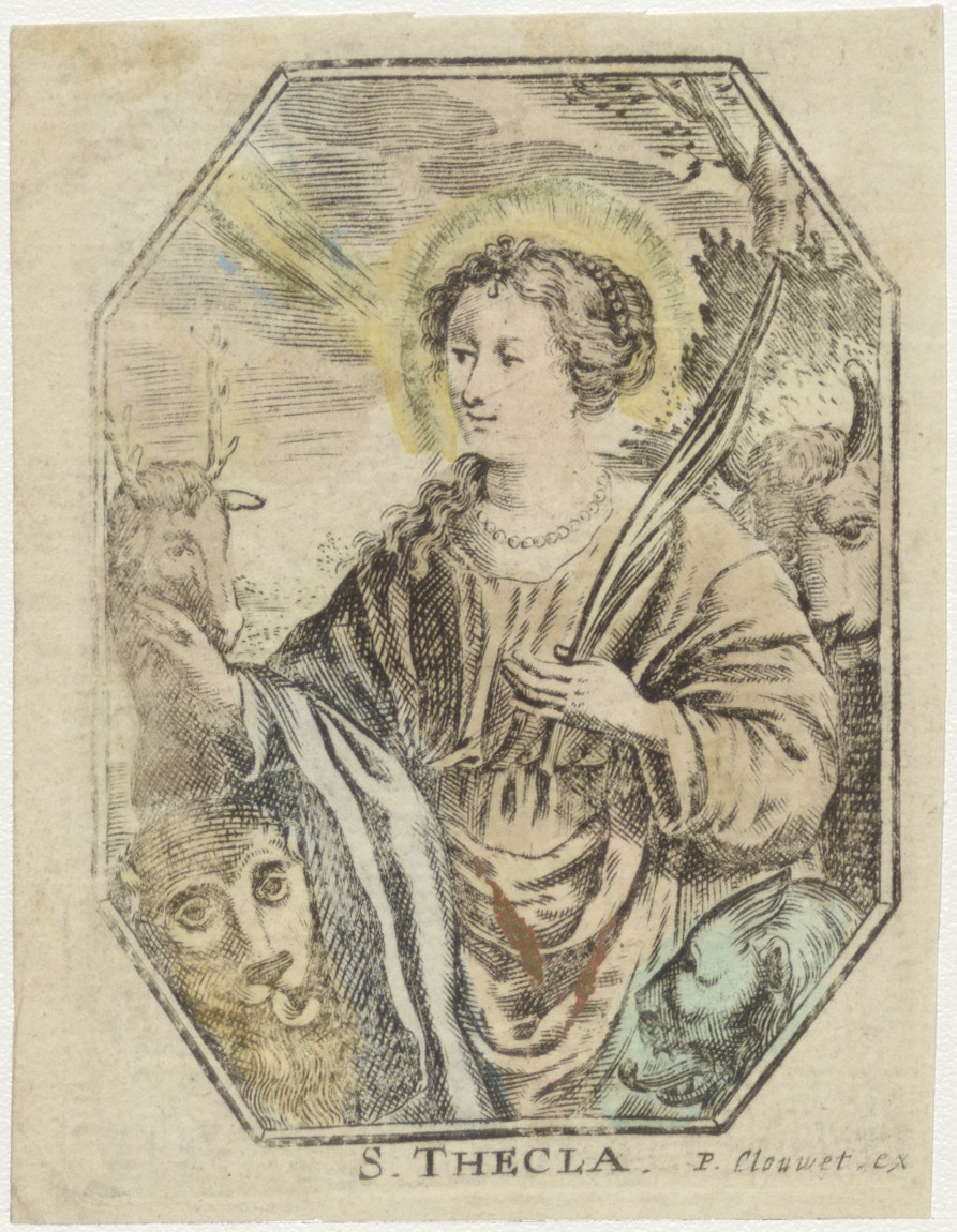 H. Thecla met vier evangelistensymbolen, ingekleurd