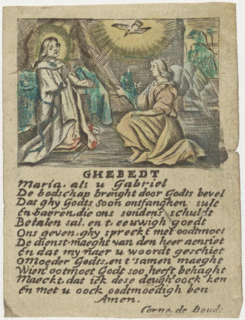 Annunciatie, Maria boodschap met gebed, ingekleurd