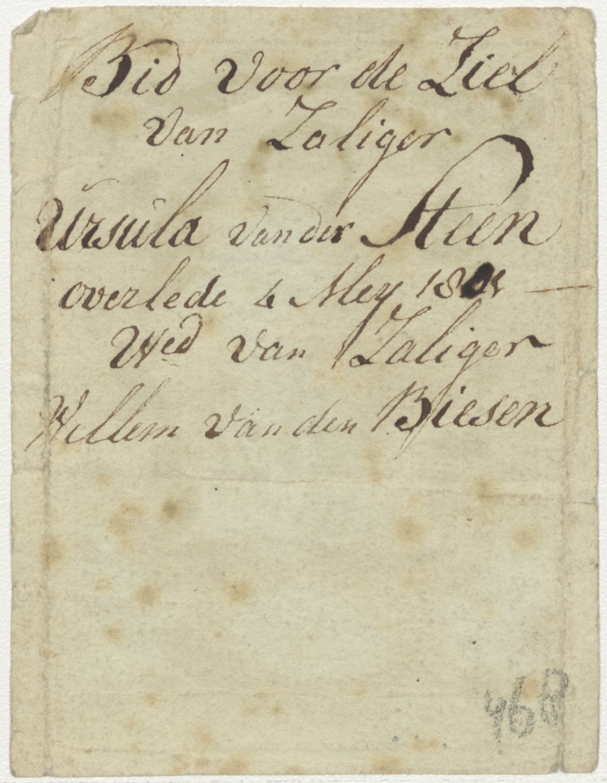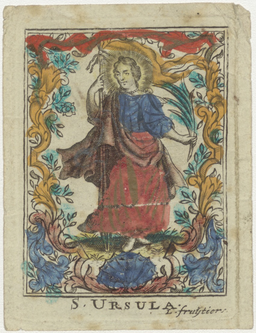 H. Ursula, ingekleurd, kz. Bid voor ziel Ursula van den Biesen-van der Steen (+1805);