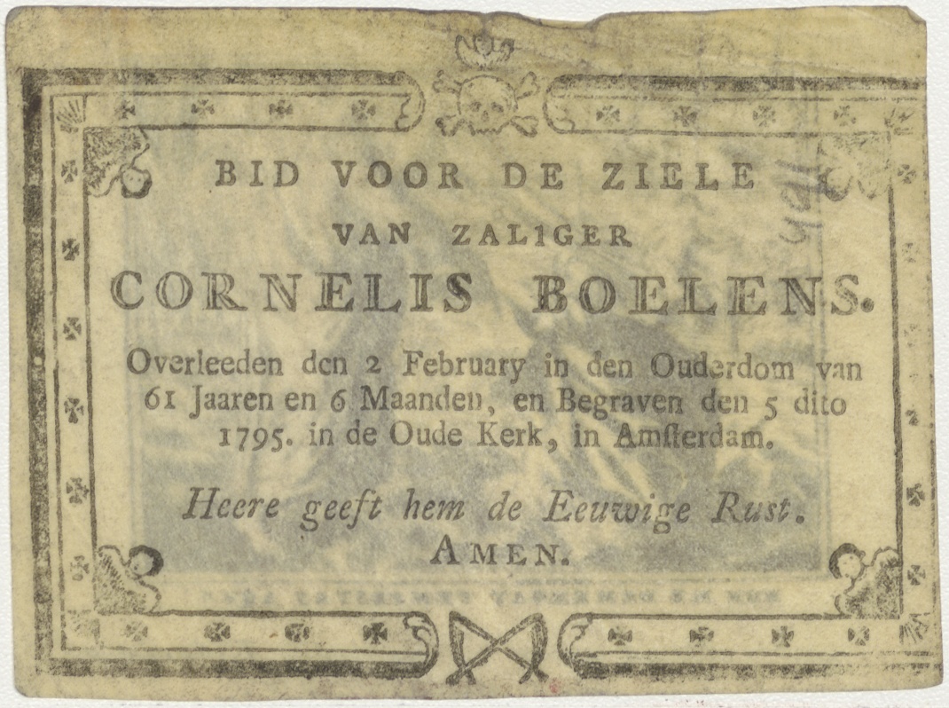 Christus redt Petrus die in het meer van Galilea dreigt te verdrinken, kz. Bid voor ziel Boelens (+1795);Oude Kerk Amsterdam;