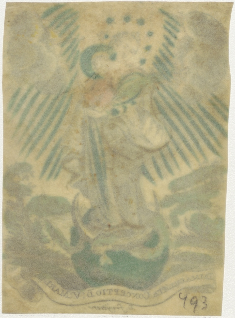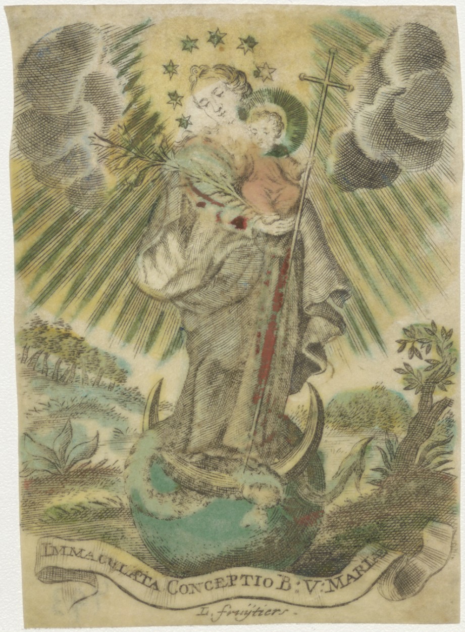 Maria met Christuskind op maansikkel, Maria Immaculata, ingekleurd