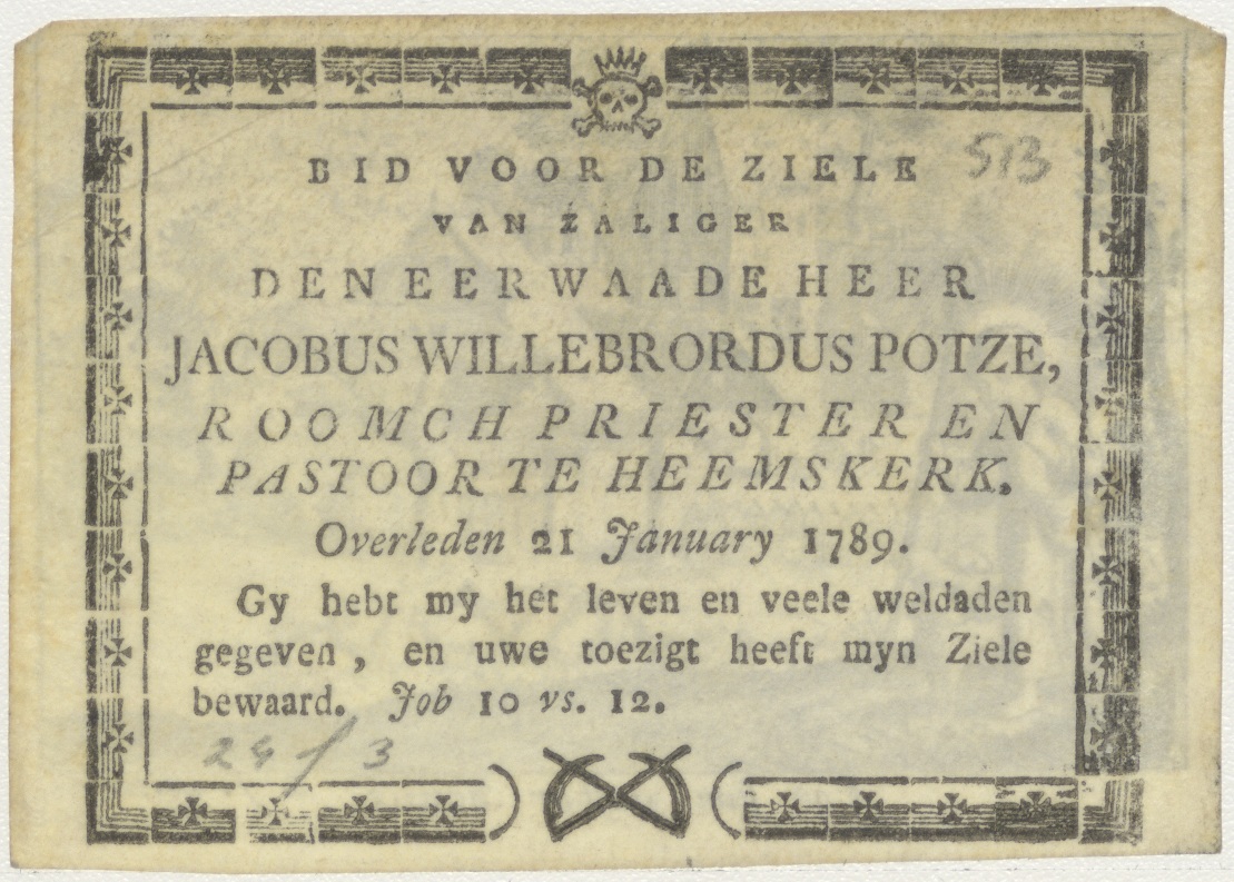 Christus als schapenherder, kz. Religieus;Bid voor ziel Jacobus Potze (+1789);R.K. priester te Heemskerk