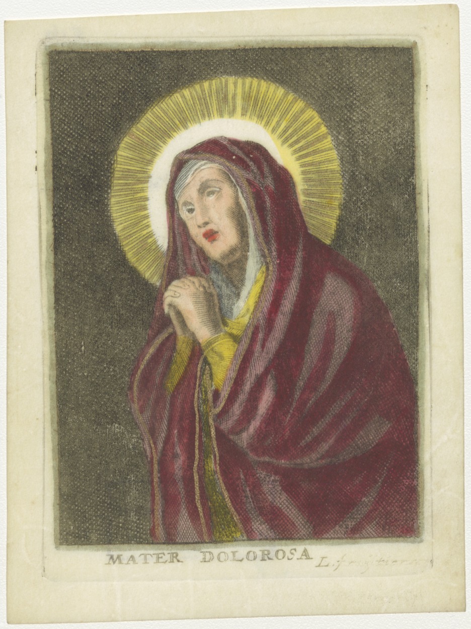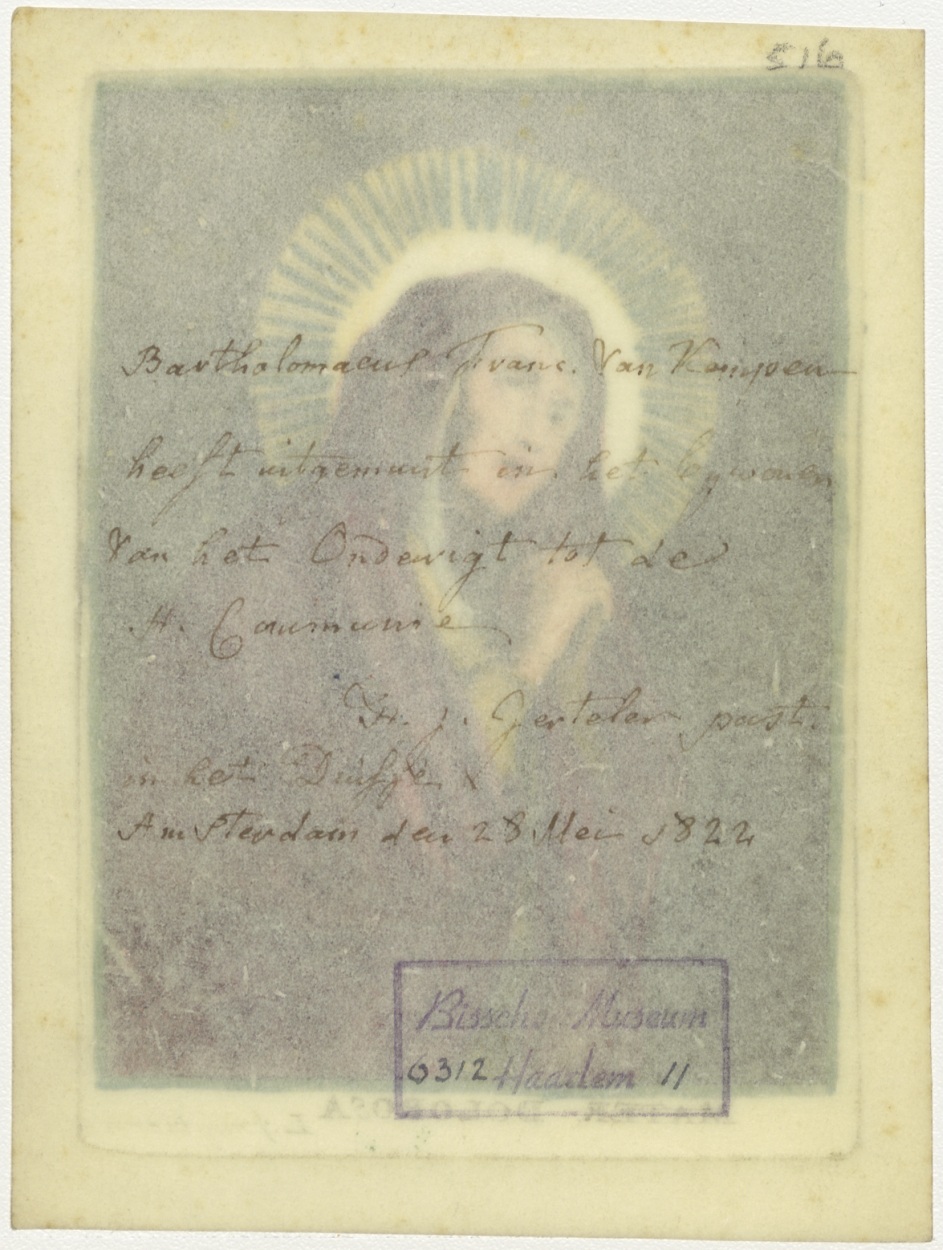 Maria Mater Dolorosa, ingekleurd, kz. Onderigt H. Communie Van Kampen;1822 van pastoor Gerteler