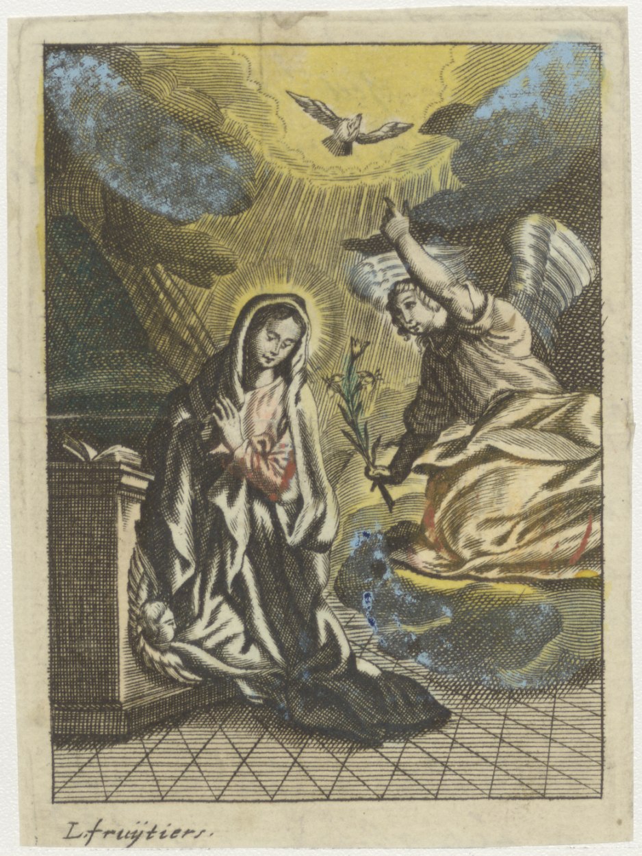 Annunciatie, Maria boodschap, ingekleurd, kz. tekst