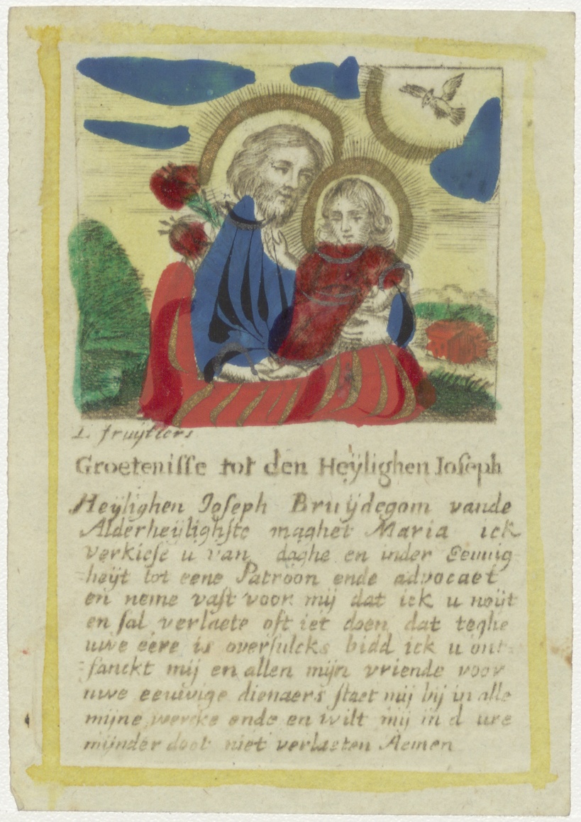 H. Jozef (Joseph) met Christuskind met gebed, ingekleurd