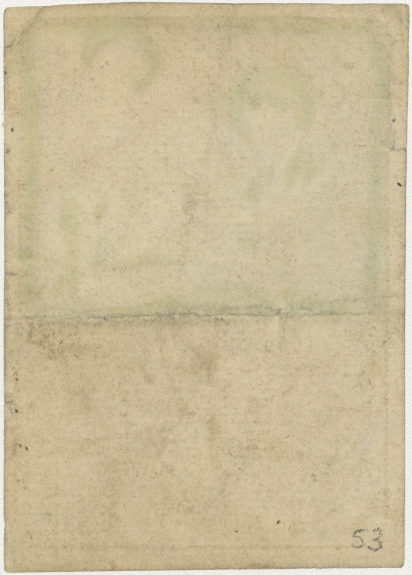 Christus kruisdragend met vrouw (Maria?), met gebed, ingekleurd