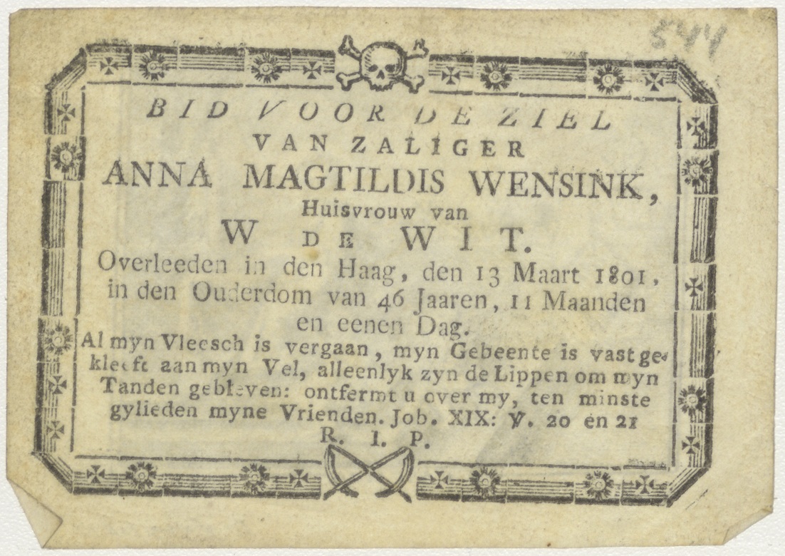 H. Cecilia, kz. Bid voor ziel Wensink-de Wit (+1801);Den Haag