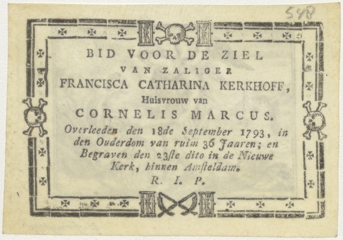 H. Dorothea, kz. Bid voor ziel Marcus-Kerkhoff (+1793);Nieuwe Kerk Amsterdam