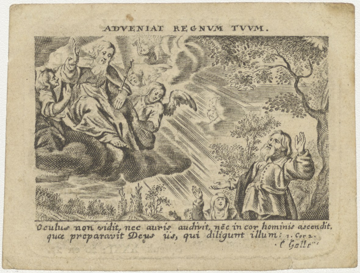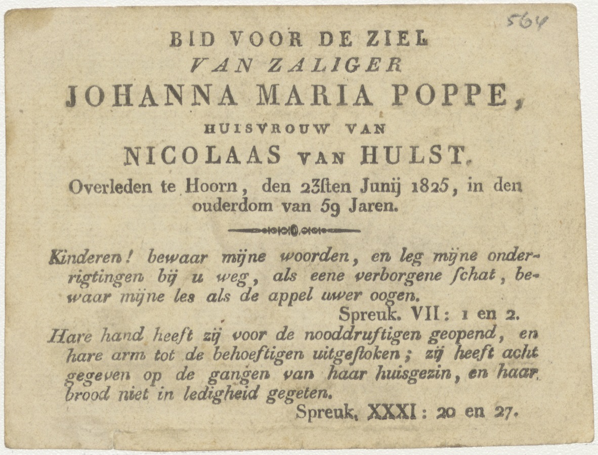 God kijkt vanaf wolken naar mensen, kz. Bid voor ziel van Hulst-Poppel (+1825);Hoorn;