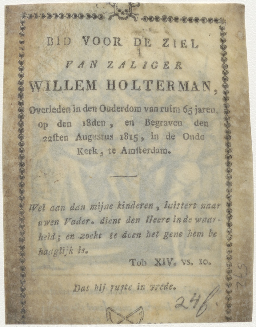 Passiescène: Pilatus wast zijn handen in onschuld, met Christus, kz. Bid voor ziel Holterman (+1815), Oude Kerk Amsterdam