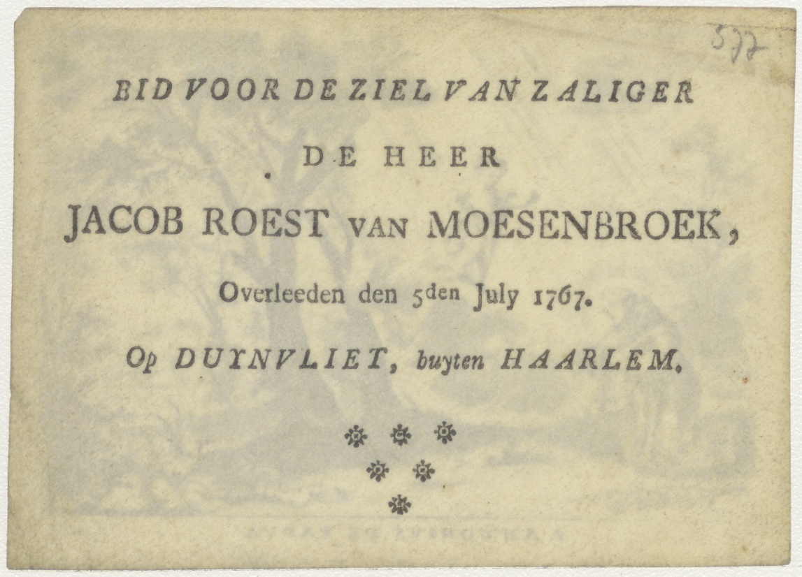 H. Antonius van Padua, kz. Bid voor ziel Roest van Moesenbroek (+1767);Duynvliet;Haarlem;
