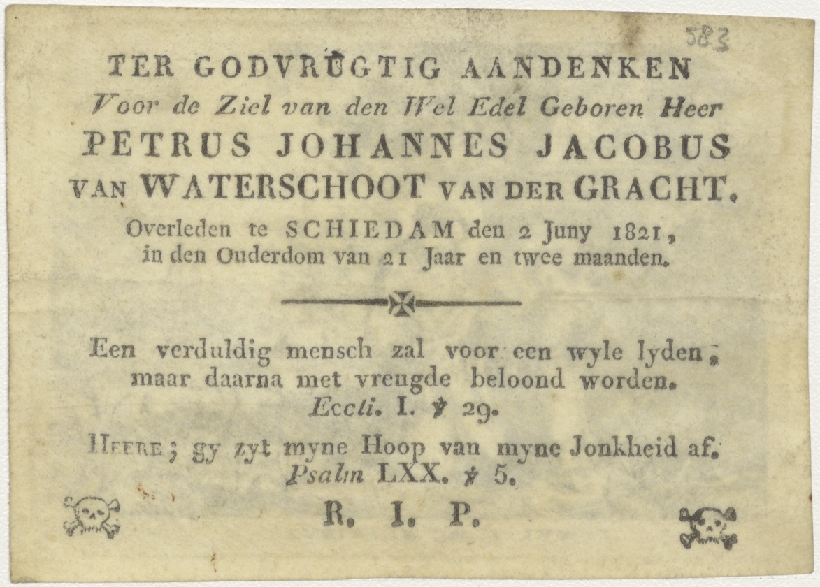Moeder met kind, Maria(?), kz. Bid voor ziel van Waterschoot-van der Gracht (+1821);Schiedam;