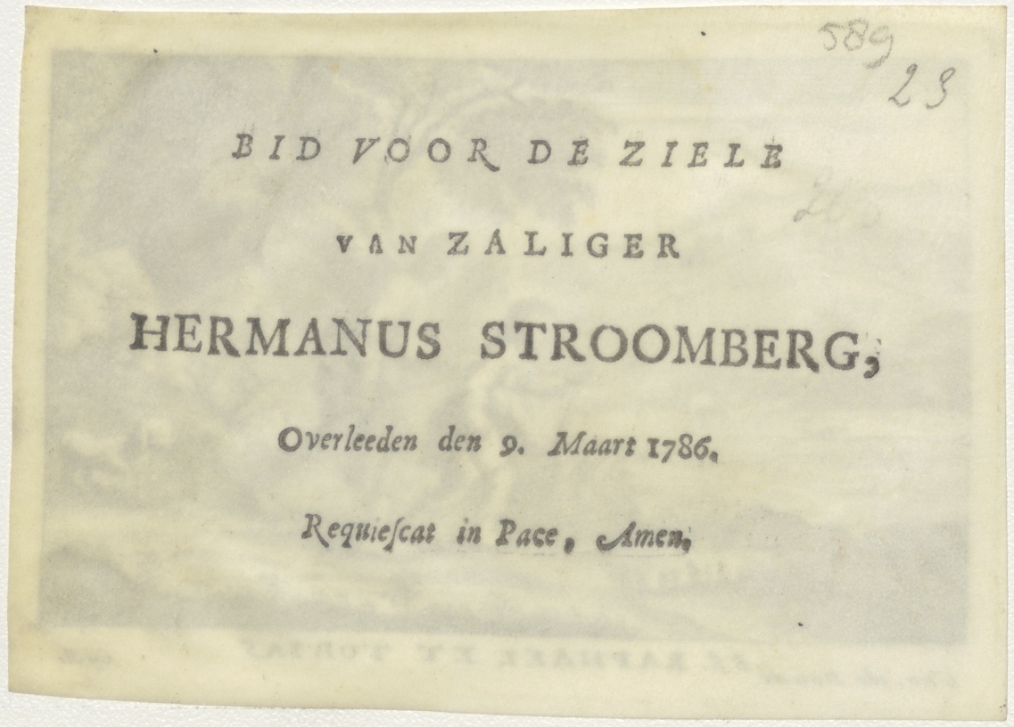 Tobias en de (bewaar)engel, kz. Bid voor ziel Stroomberg (+1786)