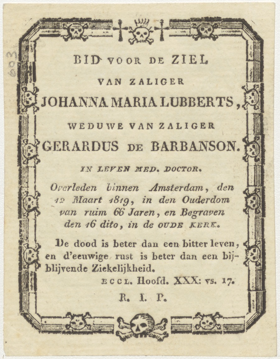 Christuskind en Johannes, kz. Bid voor ziel Barbanson-Lubbers (+1819);Oude Kerk Amsterdam