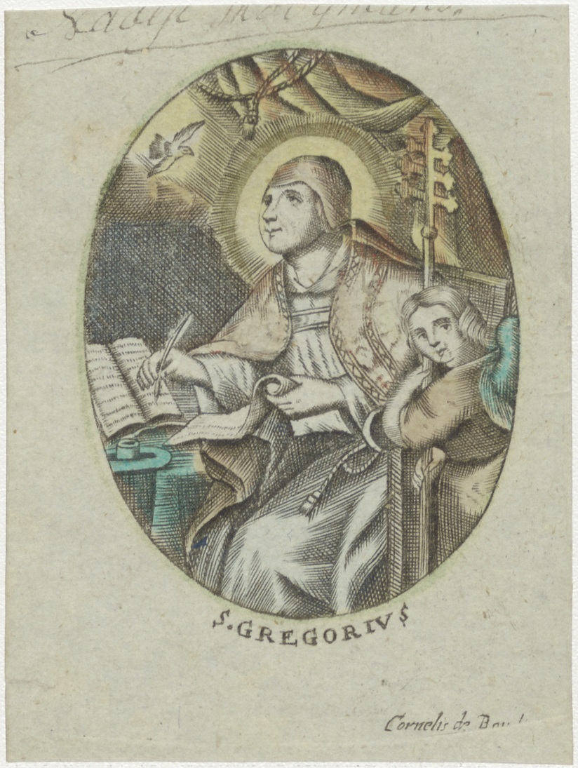 H. Gregorius, ingekleurd, kz. Hooymans, gekregen van Hermanus Wiegmans, kapelaan te Voorschoten;1805;
