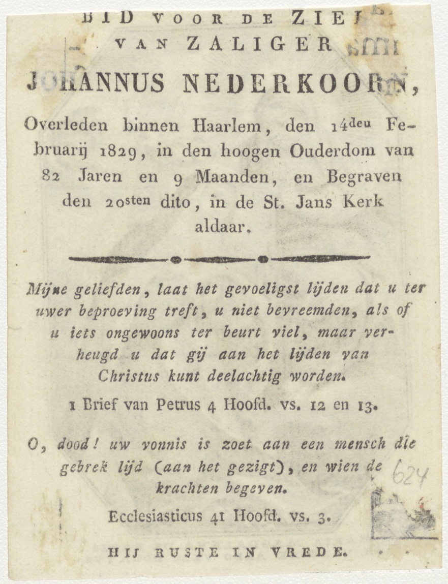 Maria Magdalena de Pazzi, kz. Bid voor ziel Nederhoorn (+1829);Haarlem;