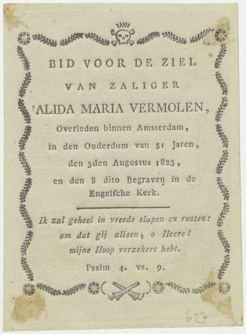 H. Joseph (Jozef) met Christuskind, kz. Bid voor ziel Vermolen (+1823) Amsterdam Engelsche Kerk