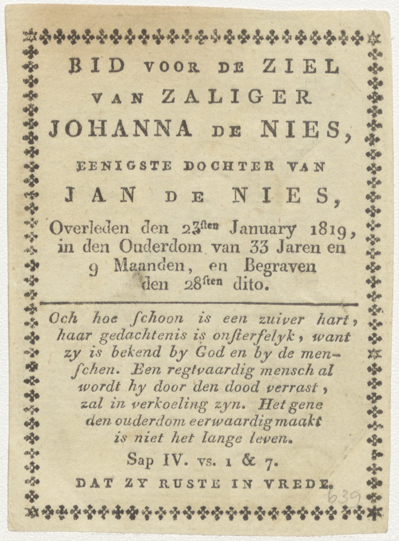 H. Augustinus, kz. Bid voor ziel De Nies (+1819);