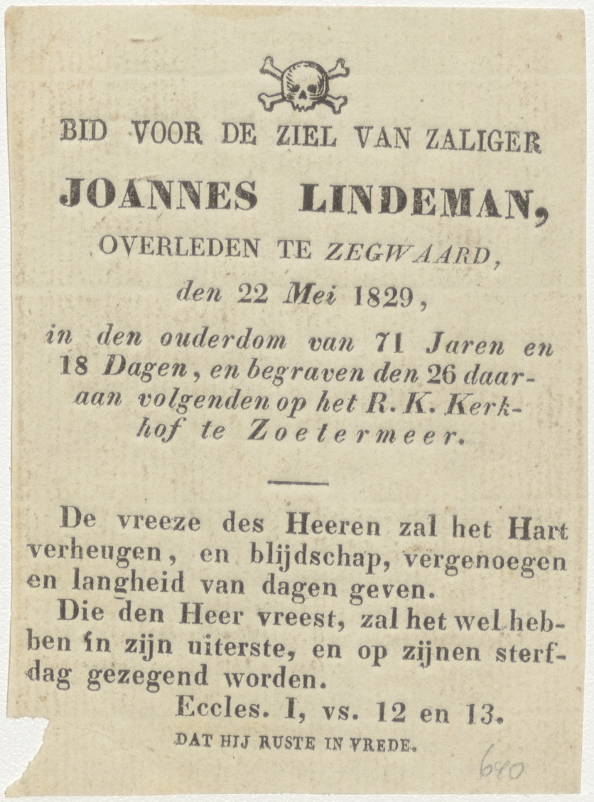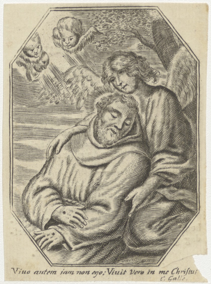 H. Franciscus(?) met engel, kz. Bid voor ziel Lindeman (+1829);Zoetermeer;