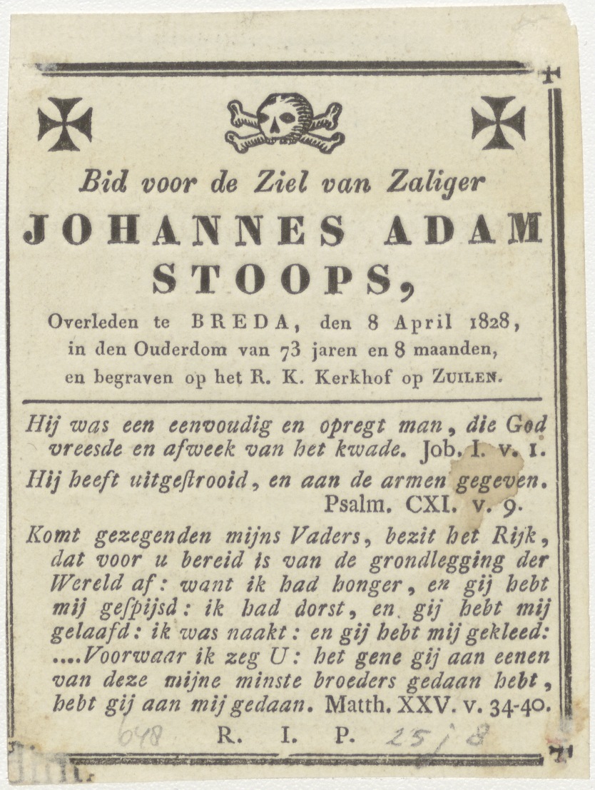 H. Franciscus, H. Didacus, kz. Bid voor ziel Stoops (+1828);Breda;