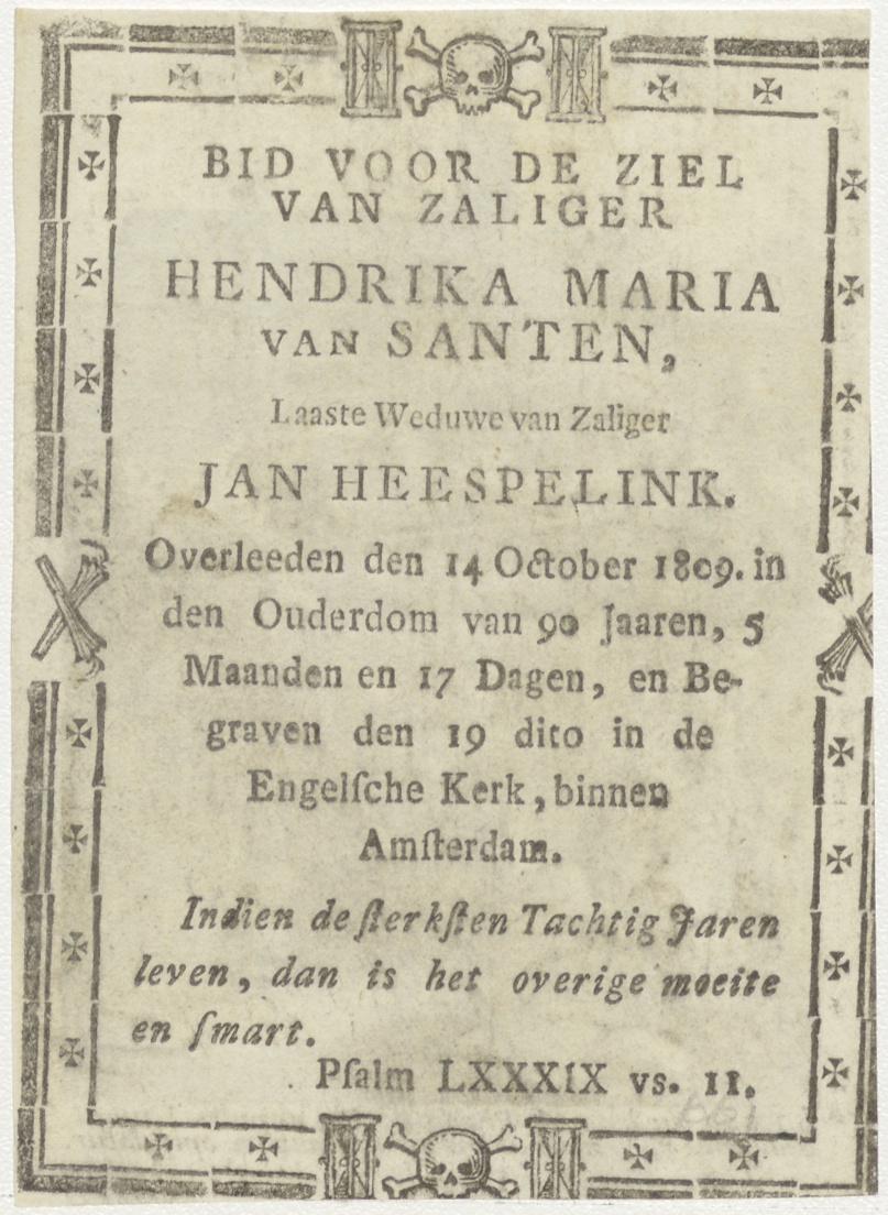 H. Rosa, begrafenisscène Sepulccro Opifera, kz. Bid voor ziel Van Santen-Heesperlink (+1809);Engelsche Kerk Amsterdam;