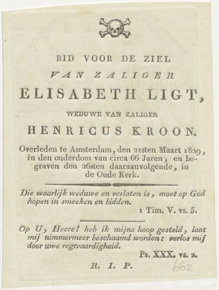 H. Albertus, cont. ordinis carm. met Maria eb Christuskind, kz. Bid voor ziel Kroon-Ligt )+1829);Amsterdam;