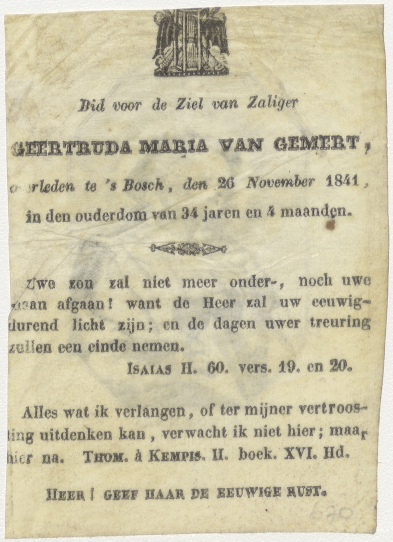 H. Joannes, kz. Bid voor ziel van Gemert (+1841);Den Bosch;