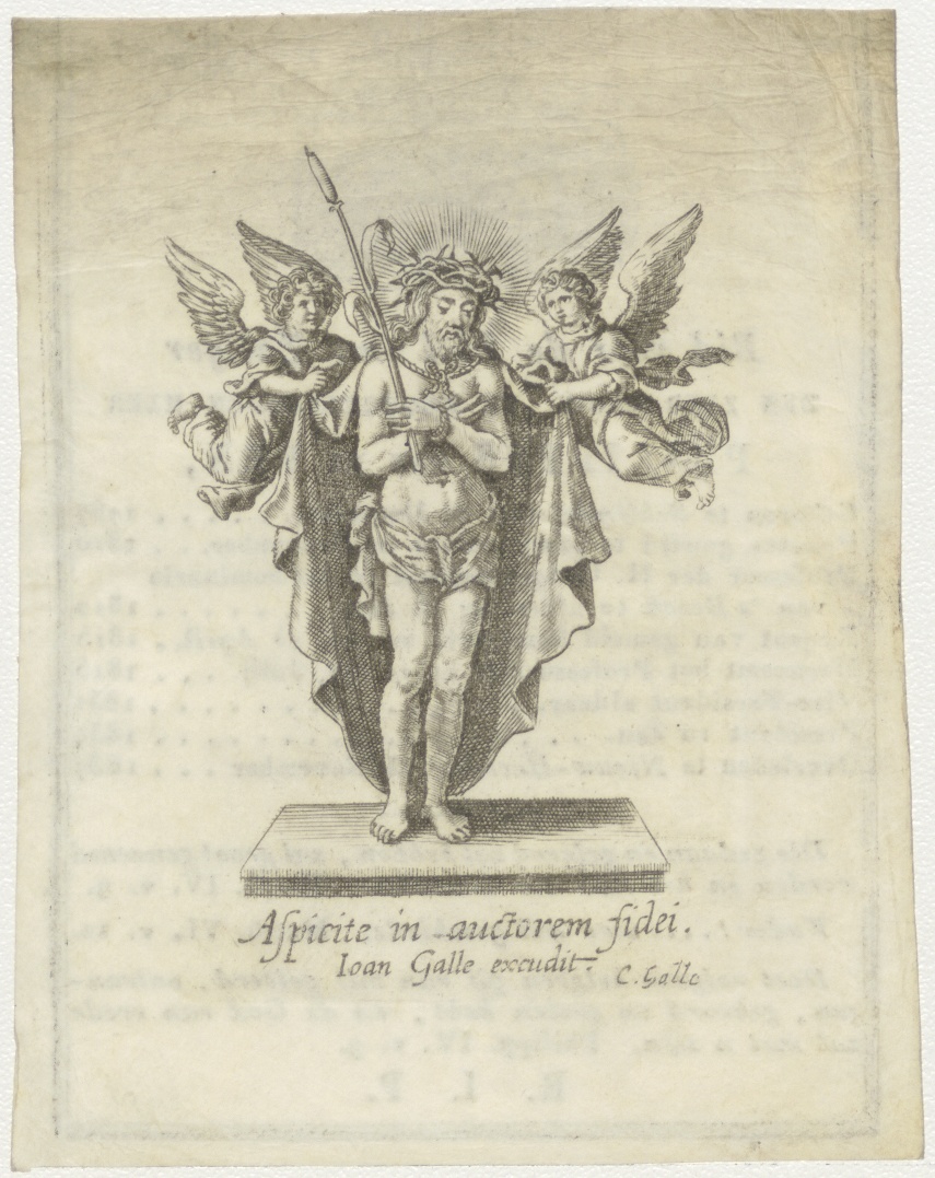Christus met twee engelen, kz. Religieus;Bid voor ziel van de Ven (+1837);professor seminarie Den Bosch;Nieuw Herlaar;