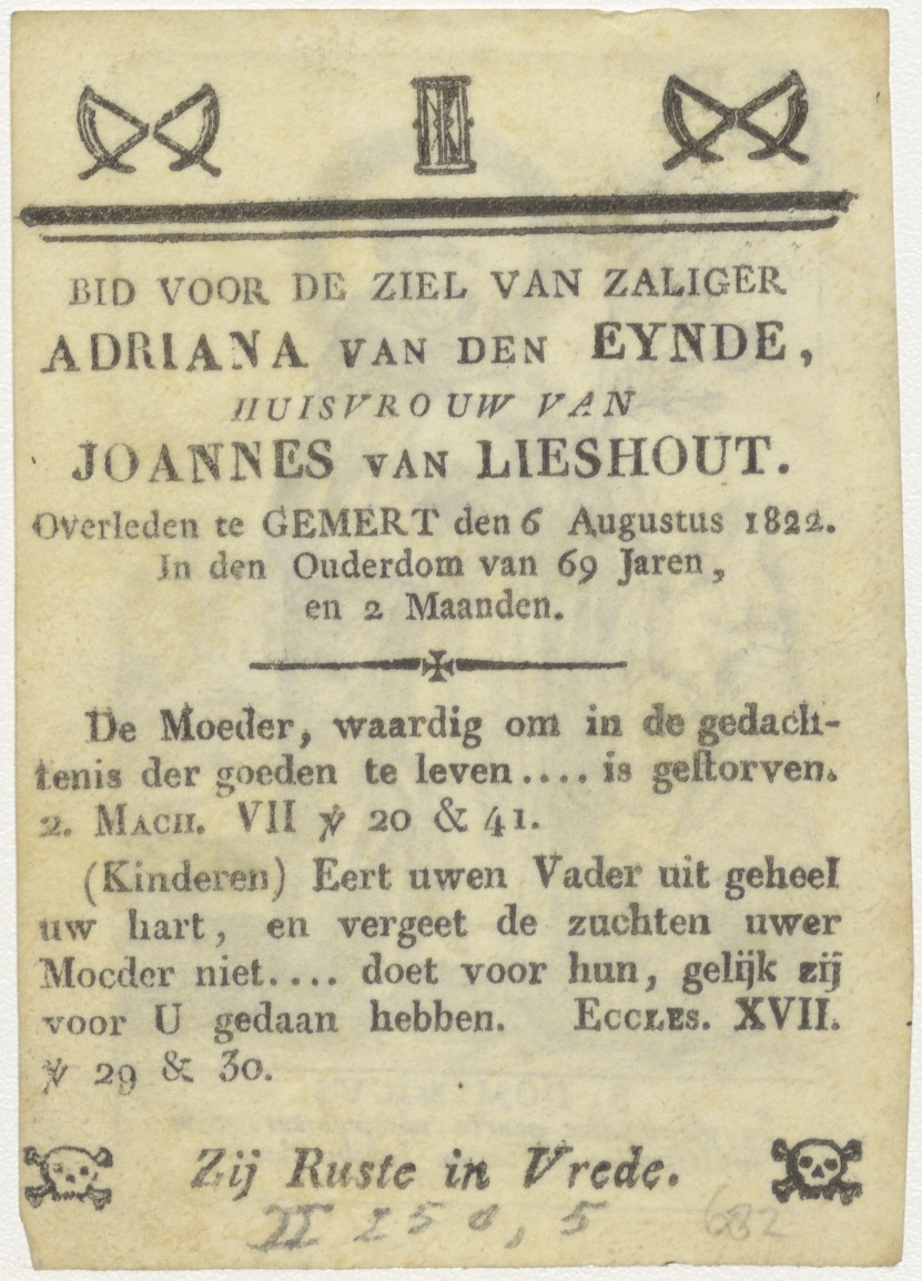 H. Dominicus, kz. Bid voor ziel Lieshout-Van den Eijnde (+1822);Gemoet;