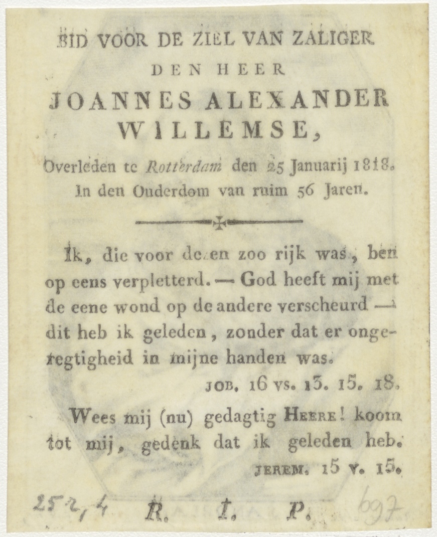 H. Andreas, kz. Bid voor ziel Willemse (+1818);Rotterdam;