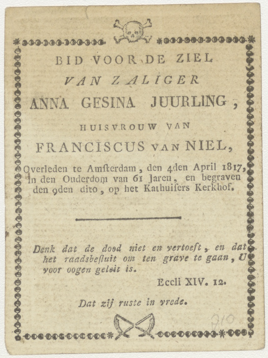 H. Joseph (Jozef) met Christuskind, kz. Bid voor ziel Van Niel-Juurling (+1817);Amsterdam;