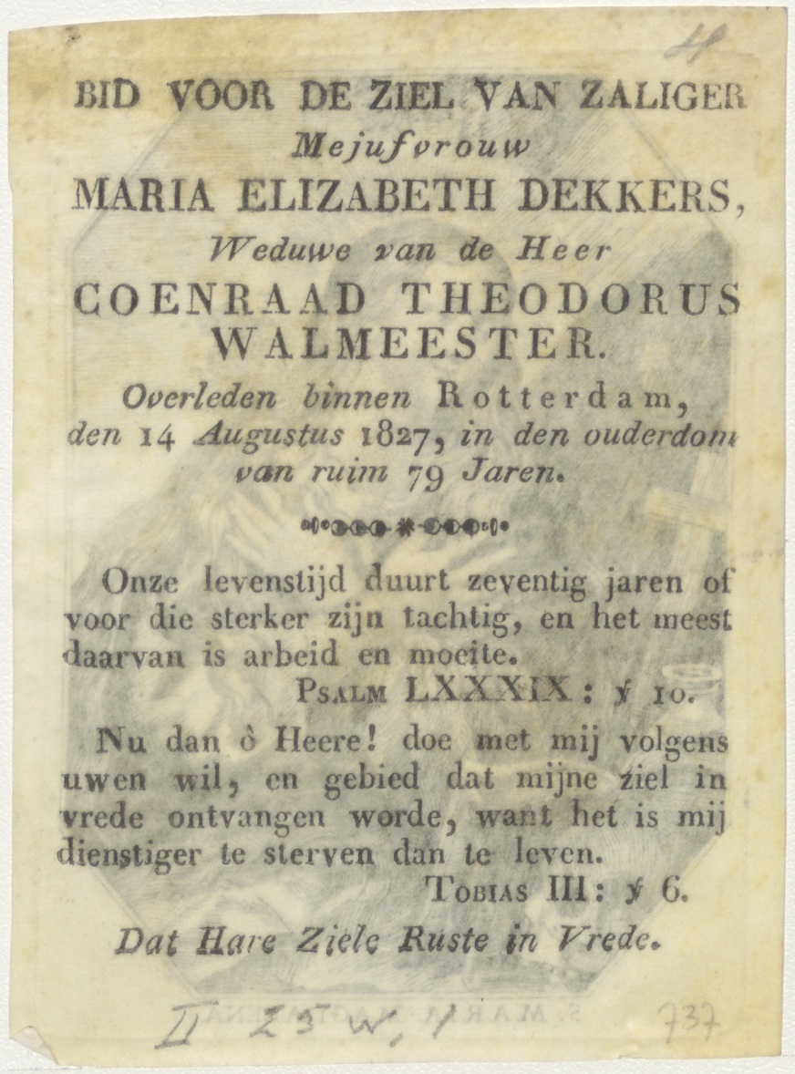 H. Maria Magadalena, kz. Bid voor ziel Walmeester-Dekkers (+1827);Rotterdam;