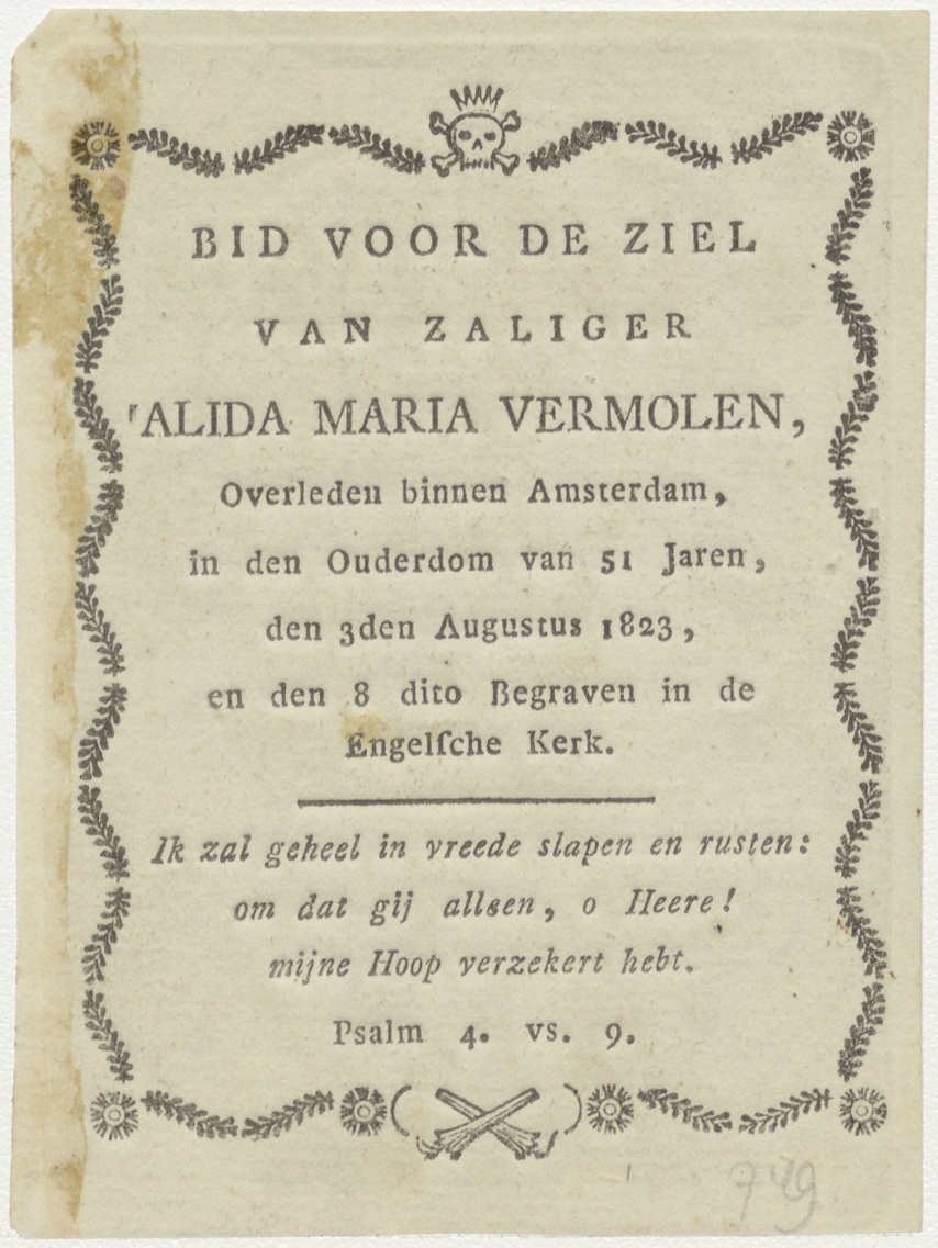 Christus aan het kruis, kz. Bid voor ziel Vermolen (+1823);Engelsche Kerk Amsterdam;