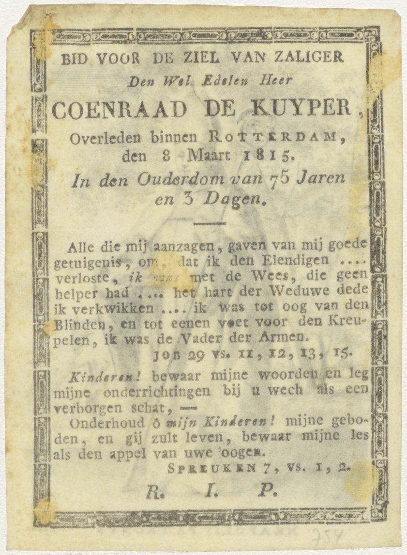H. Januarius, patroon van Napels, kz. Bid voor ziel De Kuyper (+1815);Rotterdam;