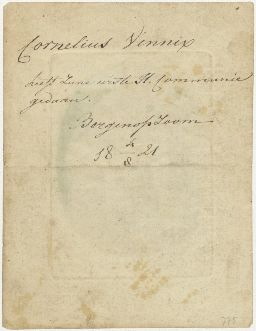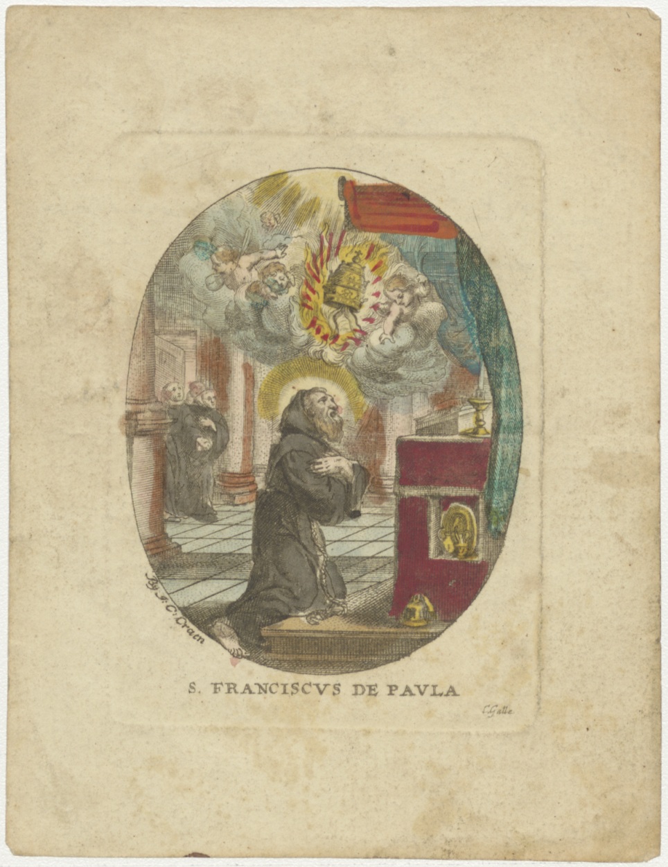 H. Franciscus de Paula (van Paola), ingekleurd, kz. H. Communie Vannix;1821 te Bergen op Zoom;