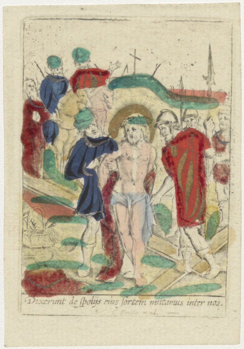 Passiescène, Christus wordt ontkleed bij het kruis, ingekleurd